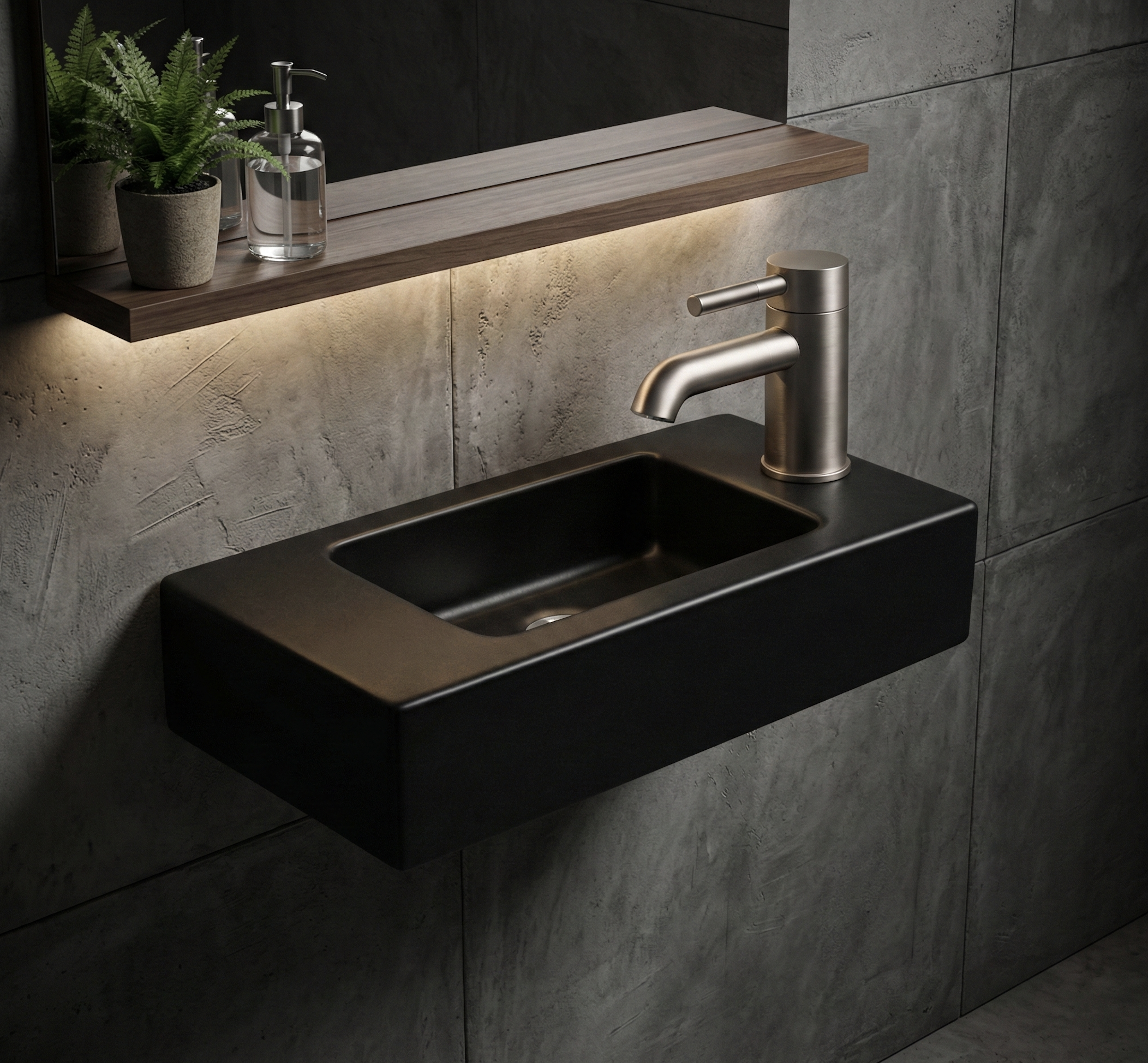 LUVIA Toiletfontein vierkant | MAT ZWART | Kraangat rechts | Kayvit