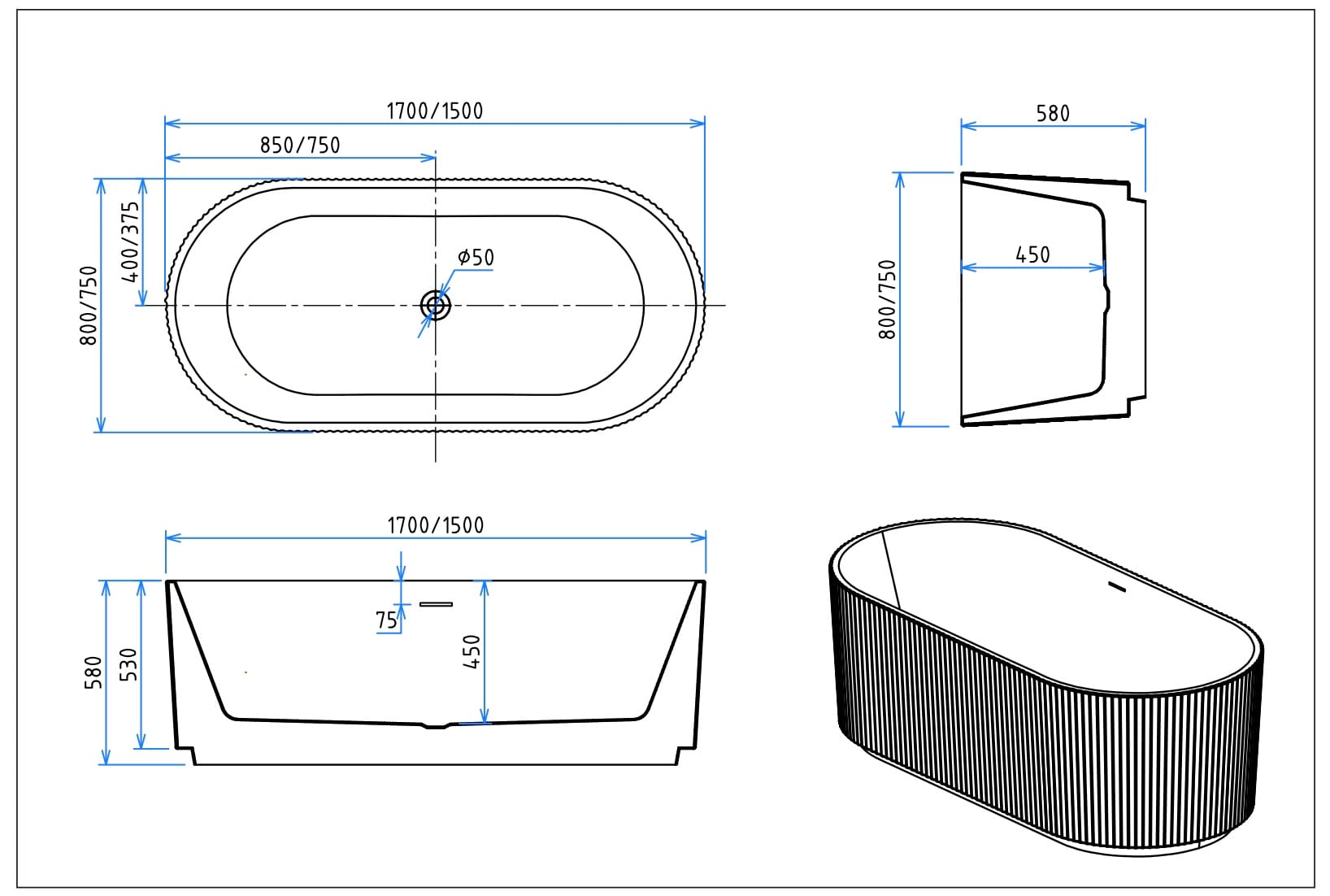 Vrijstaand bad | RONDO | MAT WIT | 170x80x58cm.