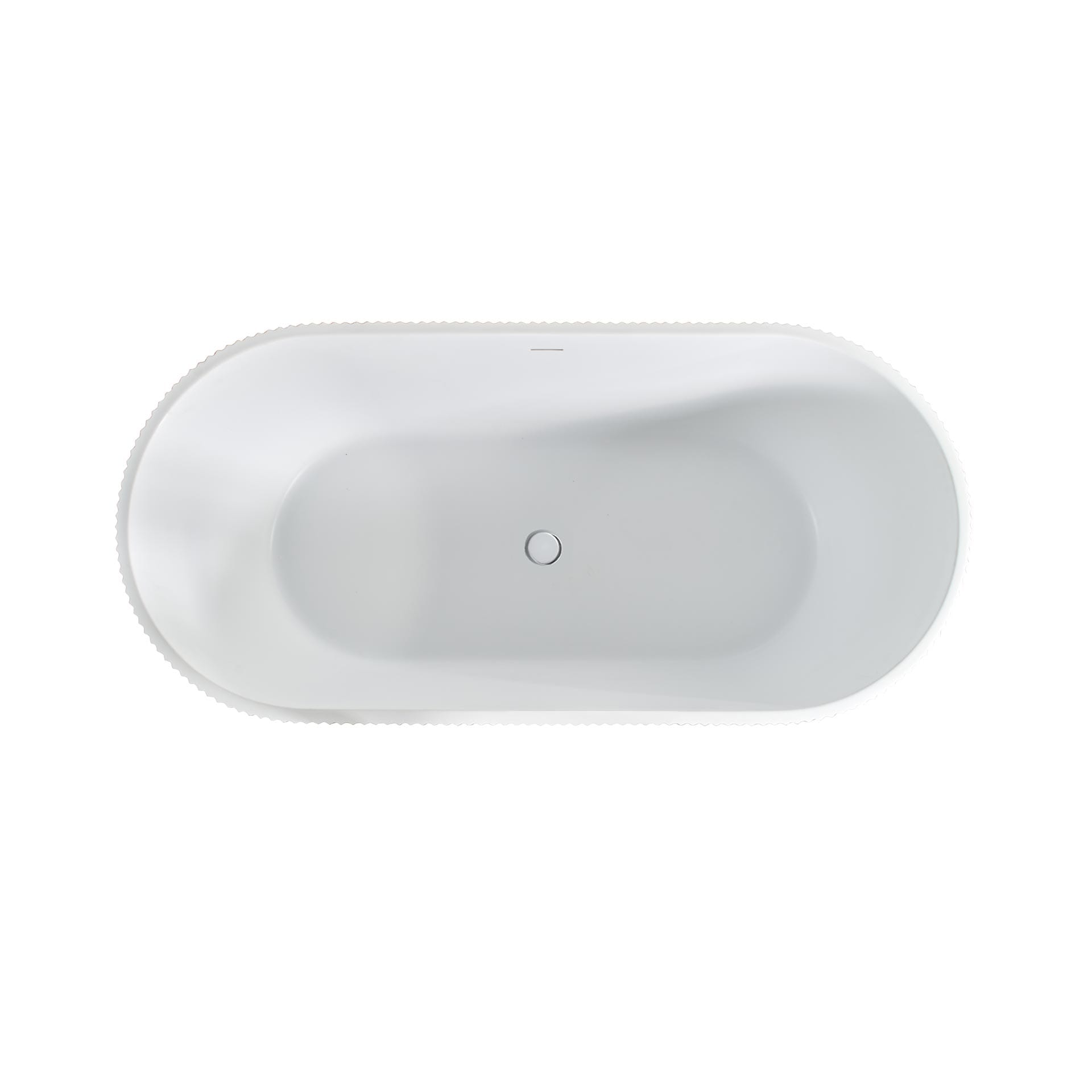 Het vrijstaande bad ‘RONDO’ is gemaakt van hoogwaardig acryl, wat lichtgewicht, duurzaam en makkelijk te onderhouden is. De verticale lijnen geven het bad een elegante en verfijnde uitstraling, en het benadrukt de hoogte van het bad wat de ruimte optisch kan vergroten. De strakke lijnen passen goed in moderne badkamers en kunnen zowel een tijdloze als eigentijdse sfeer creëren.